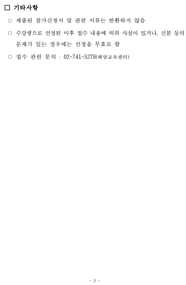 2025년 청소년 해양교육 프로그램(가족형 체험학습) 참가자 선정 결과 공고
